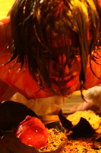 He hablado de la Celebración de la vida y el olvido del ser, desentrañando ideas y conceptos que, pienso, podrían ser del dominio de muchos otros seres que como yo quieran desafiar lo dado, lo establecido; pero esa fue la primera parte de toda mi intención cuando decidí emprender este maravilloso proyecto. La otra parte, el thorubos, es un grito guerrero, un enfrentamiento directo con la emoción y las sensaciones que pueden provocar las imágenes.
