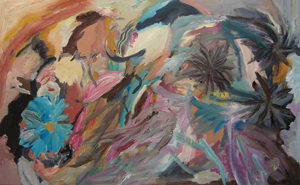 La emoción guía, conduce y a la vez trastorna nuestras percepciones, y cada objeto hacia el que está referida nuestra emoción, va cargado de nuestra propia historia. En esta exposición, cada cuadro es una mujer, es un nombre, una vida, un color que domina y es a la vez un paisaje. Paulina es la luminosidad de ojos dorados; Viridiana es la que habla de poesía contemporánea; Angie resplandece entre flores y tatuajes. En todos se percibe la fuerza de ‘lo femenino’; no solamente en la serie de pinturas que son el resultado directo de las sesiones con las modelos; incluso los paisajes huelen a perfume y hasta esos seres de otros mundos que parecen sacados de un manga japonés, tienen un toque femenino. En cada una de las obras hay un encuentro de sujeto y objeto (sujeto-mujer / objeto-cuerpo), una confrontación de lo femenino con lo masculino y una interrelación entre idea y naturaleza. Pero ninguno de los dos opuestos predomina nunca sobre el otro, se mantienen en una oposición dialéctica equilibrada, gracias al color y la tonalidad sugeridas.