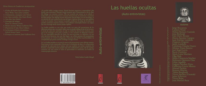 Hago esta introducción, de tono instructivo, para connotar que estas auto entrevistas, reunidas bajo el título Las Huellas Ocultas, y publicadas por las editoriales colombianas Domingo Atrasado y El Espantapárrafos, son una suerte de venganza contra los entrevistados, pues esta vez les ha correspondido investigar sobre sí mismos y realizar la compleja tarea de proyectar las preguntas.